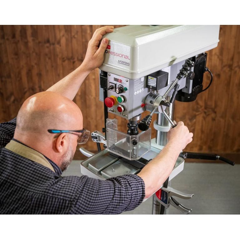 - The Axminster Professional AP25FDVS Floor Drill 230V is a versatile and highly accurate machine, perfect for both wood and metal workshops. It offers many functions typically found on more expensive drills, providing excellent value for its price.
