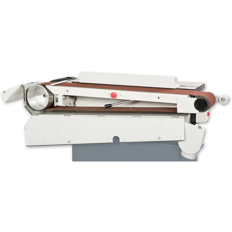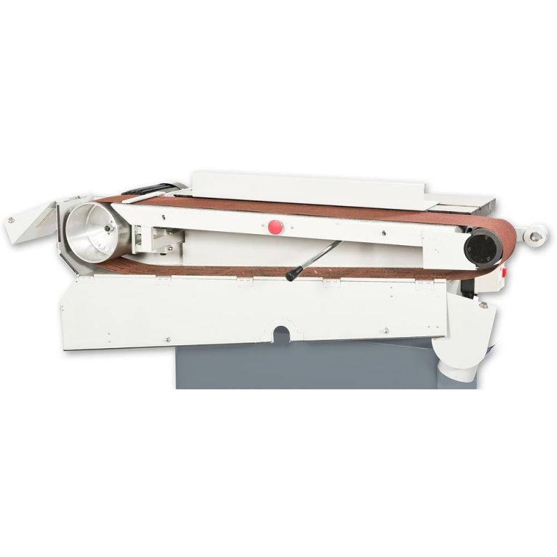 - It can be used horizontally or vertically; the belt oscillates 50 times per minute providing a scratch free finish. In the vertical mode the work table can be raised by means of a hand wheel and adjusted to minimise the gap to the sanding belt.