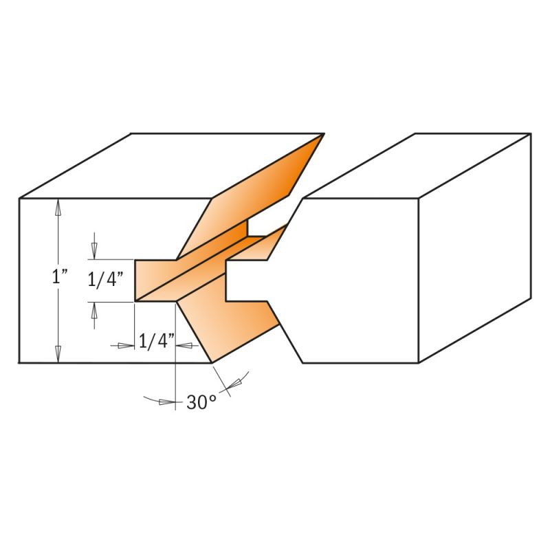 CMT Edge banding router bit set - 40 dia x 25.4mm cut x 1/2 shank, 30 deg