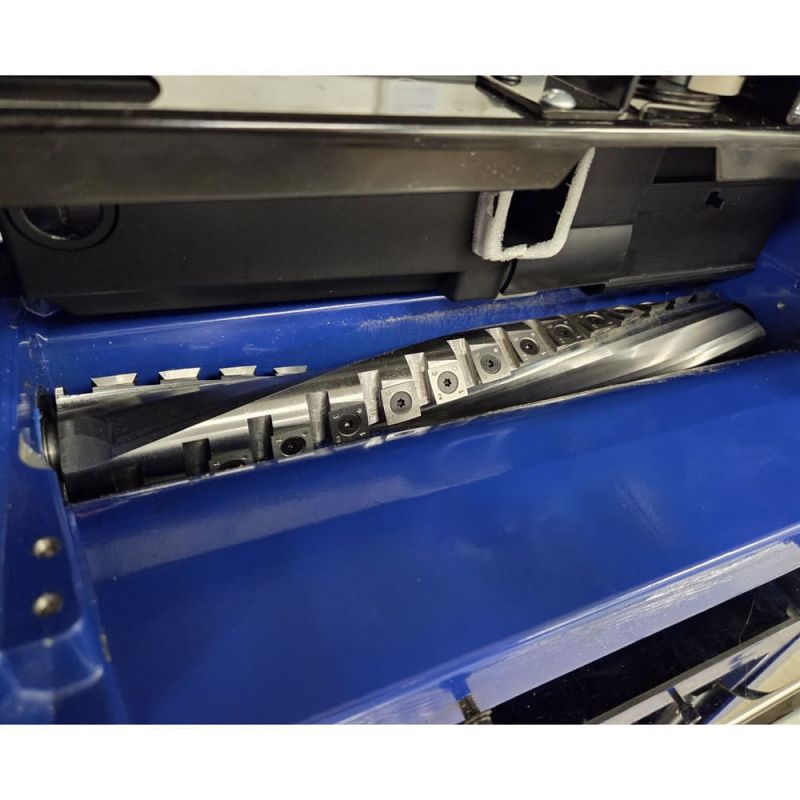 - At the heart of the machine is a spiral cutter block with 2 rows of spur cutters, arranged so that they cut in a shearing action, rather than straight. This type of cutter block is more expensive than a conventional set up, but does offer several advantages. The more use the machine gets – the more these advantages pay off.
