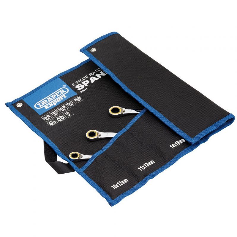 Draper Expert HI-TORQ Double Ring Reversible Ratchet Half Moon Spanner Set (5 Piece) - 03941