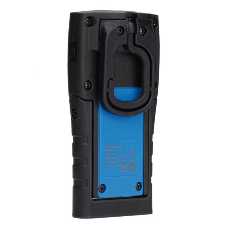 • This ultra-thin inspection light is lightweight and easy to carry. It provides a wide angle of illumination and features a long-distance torch beam for added versatility. It includes a 180° swivel stand for adjusting the beam direction, as well as strong magnets on the back and base, and an integrated hook for hands-free use.