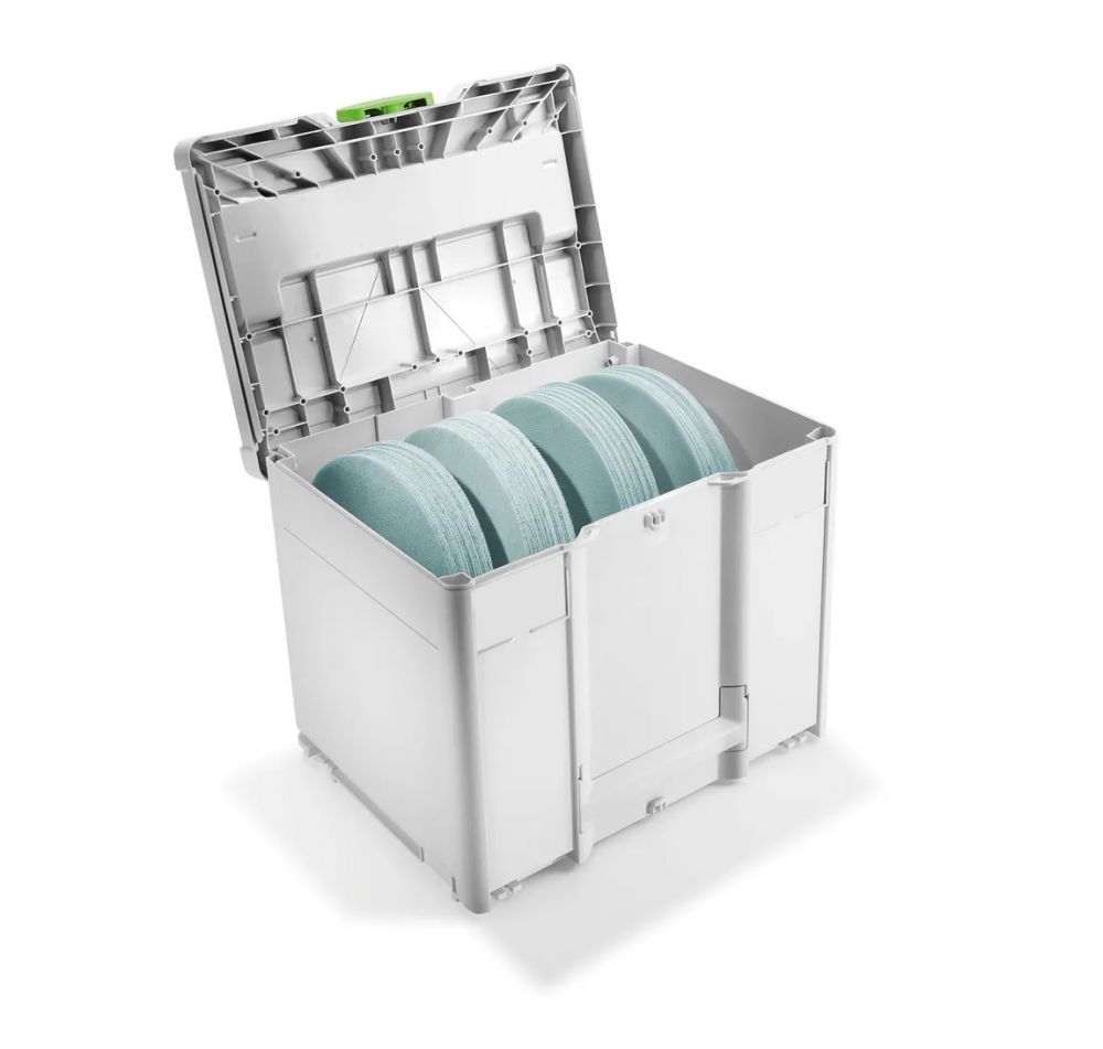 The Abrasives Systainer is the perfect addition to your long-reach sander. With its wide range of grit sizes, it offers a great way to get started in the world of GRANAT NET Abrasives. You’ll always have 25 Granat Net sanding discs from P80 to P240 right at your fingertips. An organised setup by grit size is just standard with the Abrasives Systainer. Each compartment has its spot, so you can find the grit you need in no time. It's super easy to refill, so you’re never caught short of the grit size you want. The Systainer keeps your abrasives well protected from dust, water splashes, and bending. Plus, it makes transporting your abrasives a breeze and lets you connect with other Systainers. From the workshop to the construction site, the abrasives Systainer allows you to stay flexible throughout your work day. Thanks to the tried-and-tested T-LOC system, closing, opening, and connecting is straightforward and hassle-free. The Systainers are compatible with each other as well as all previous generations, plus loads of machines and accessories.