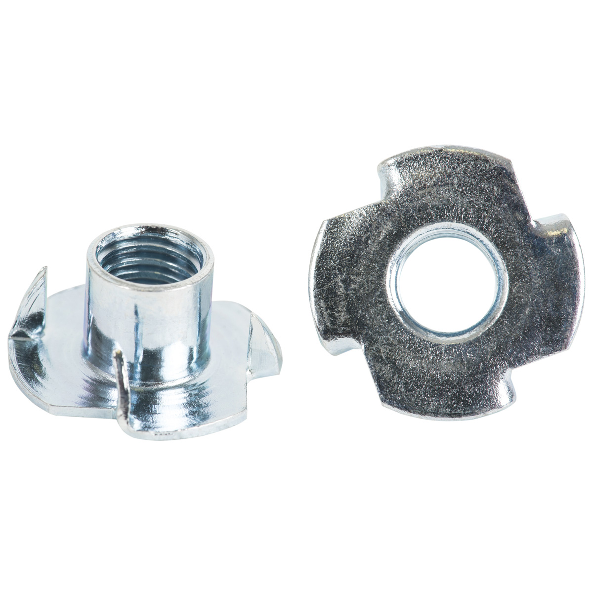 Threaded pronged T-nuts are simple but useful items for making accurate and effective jigs in the home or workshop. To insert drill a hole to size: 10mm for the M8, 12mm for the M10 and gently tap home. Supplied in packs of 10.