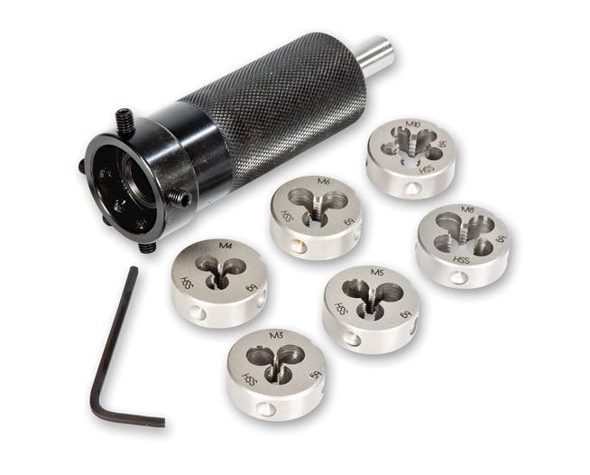 Proxxon Die Holder with Dies for Cutting Male Threads M3-M10 - 24082