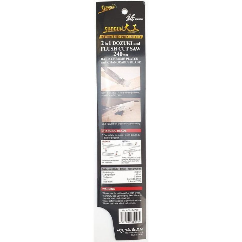 Shogun MCS-24PZF Japanese Dozuki / Flush Cut Pull Saw 240mm Length
