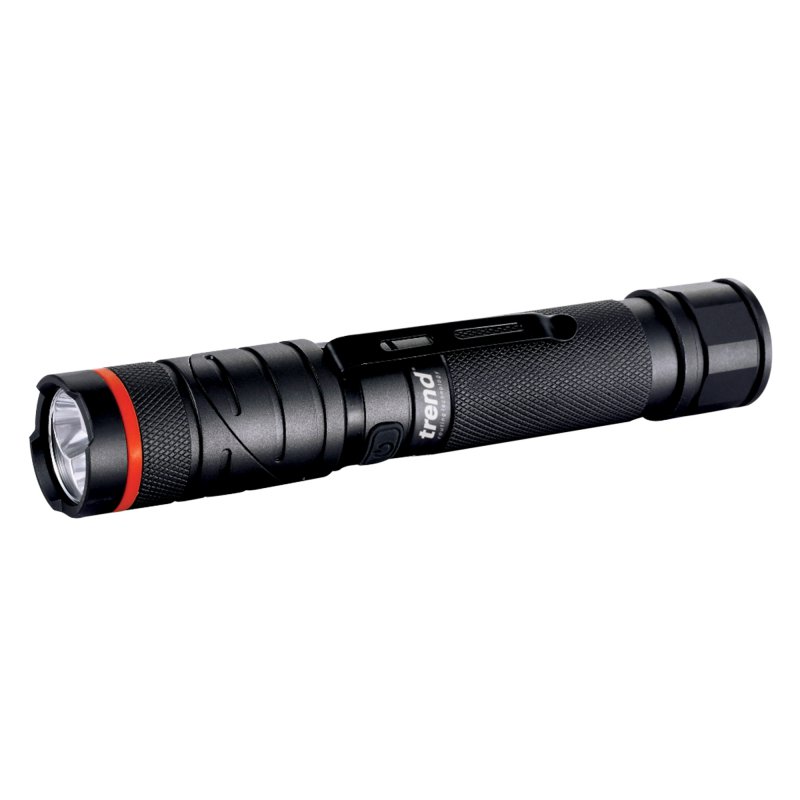 LED rechargeable 300 lumens white light torch with twistable head.