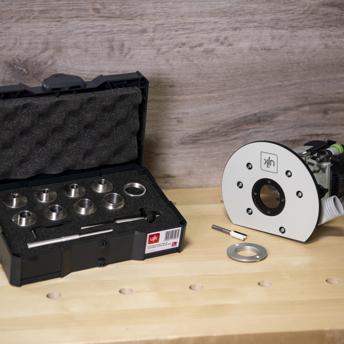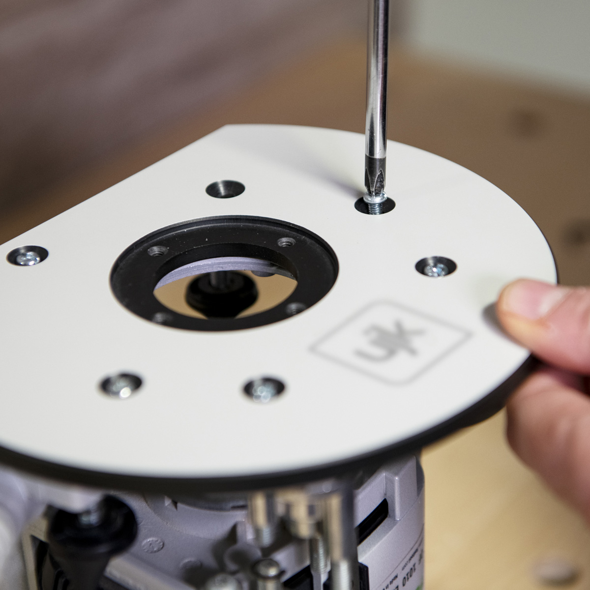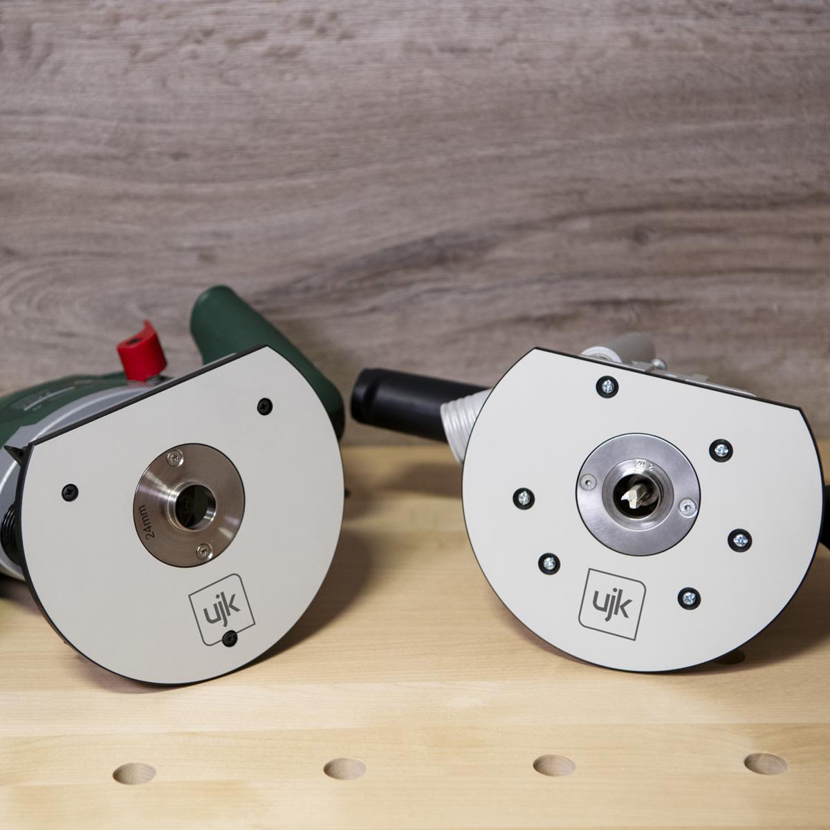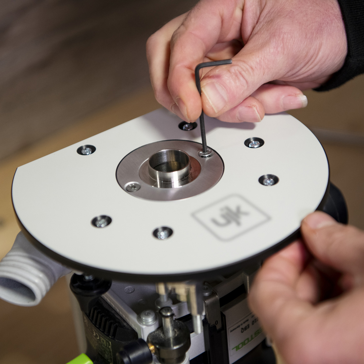 - Arguably the most useful routing accessory you'll add to your workshop; the UJK Blank Universal Sub Base. This base will help you to work safely, provides stability and increases accuracy when handheld routing. Unlike some other models, there are no pre drilled holes, therefore it is completely customisable and will fit all router models. Some routers can be difficult to match up with suitable guide bushes and a universal sub-base can be the only solution. Simply drill your countersunk holes in the centre using our UJK Centring Cone (available in metric and imperial) and your router will fit with any of our UJK guide bushes.