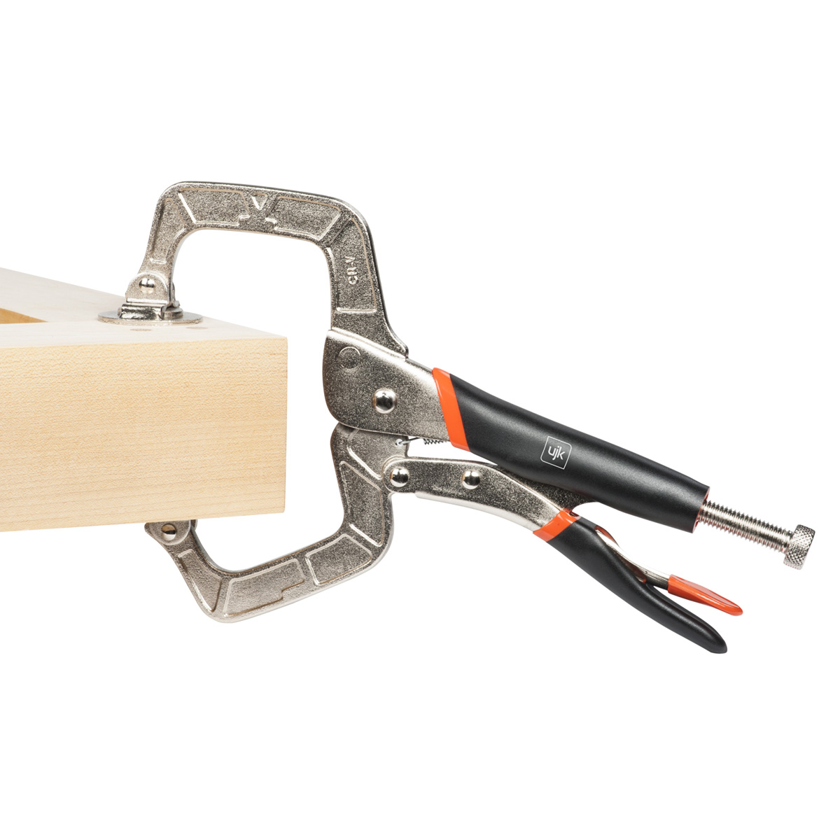 Especially developed for the UJK Pocket Hole Jig, this clamp will hold the portable plate securely to your work whilst drilling and can also be used to clamp the joint together whilst fixing. With a quick action and very secure clamp it has two large 45mm face pads that spread the clamp load. Opening to a maximum of 75mm.