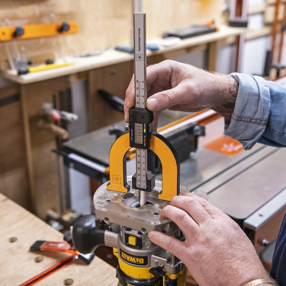 - The UJK Digital Height Gauge is an indispensable measuring tool for the accurate setting of cutting depths, in particular, router cutters and saw blades.