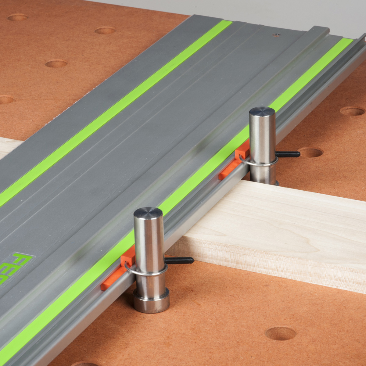 - The UJK Dog Rail Clips are ingeniously designed to attach to any standard 20mm dog holes on your workbench, using a UJK dog, allowing for a quick and secure connection of guide rails. Whether you're sawing, routing, or planning, the UJK Dog Rail Clips ensure your guide rails stay firmly in place, are kept square and provide a stable and reliable guide for precision cuts.