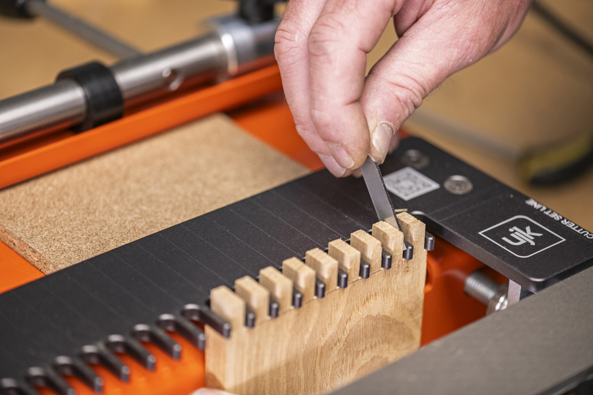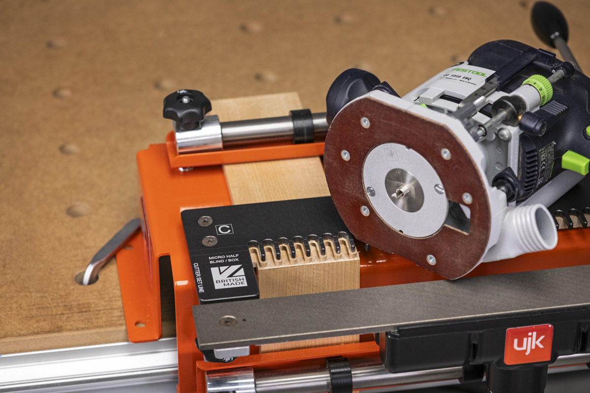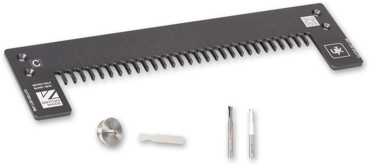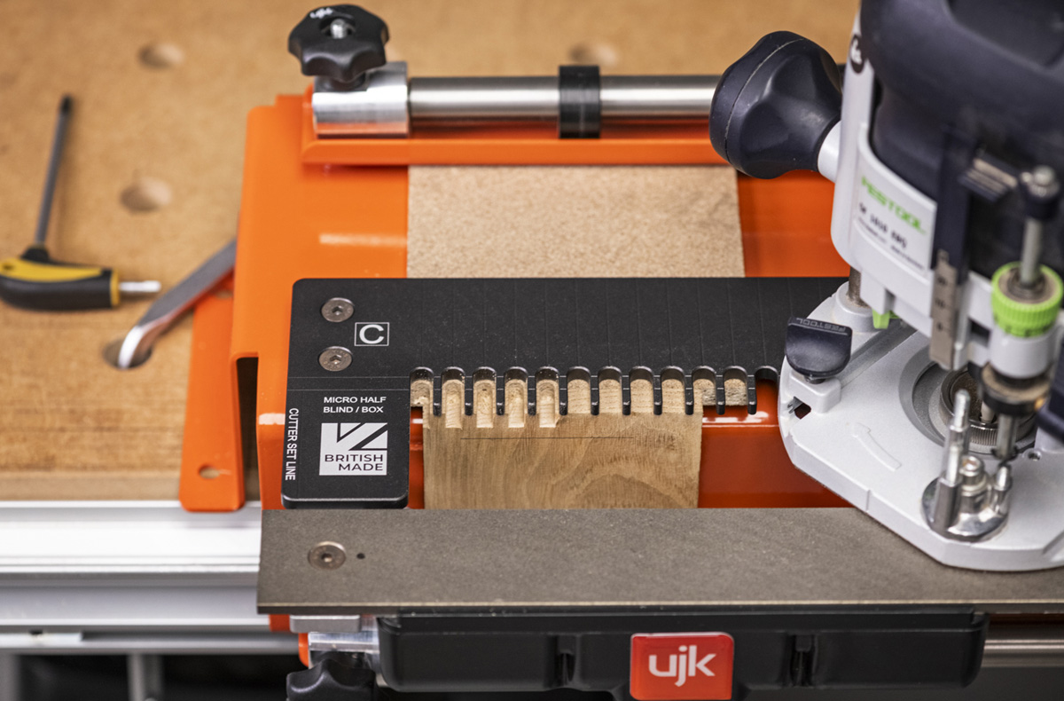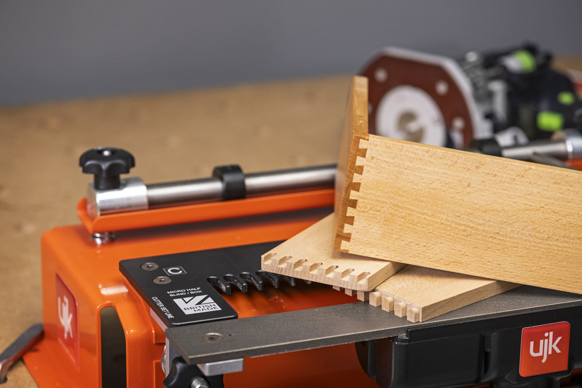 The UJK Universal Dovetail Jigs finest accessory! British Made and designed for the meticulous joiner, demanding precision for small intricate joints. Ideal for creating the finest 6mm half-blind dovetails or box joints, it's perfect for small boxes or intricate drawers that require a professional finish.