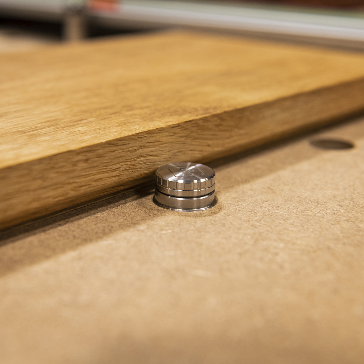 - Supplied with the unique chafer ring, this feature ensures the dog sits in the hole and provides a register ensuring the dog sits exactly at 90° to the work surface when locked in place, whilst still allowing for a flush fit, the chamfer ring also stops the dog falling through the hole before it's adjusted.