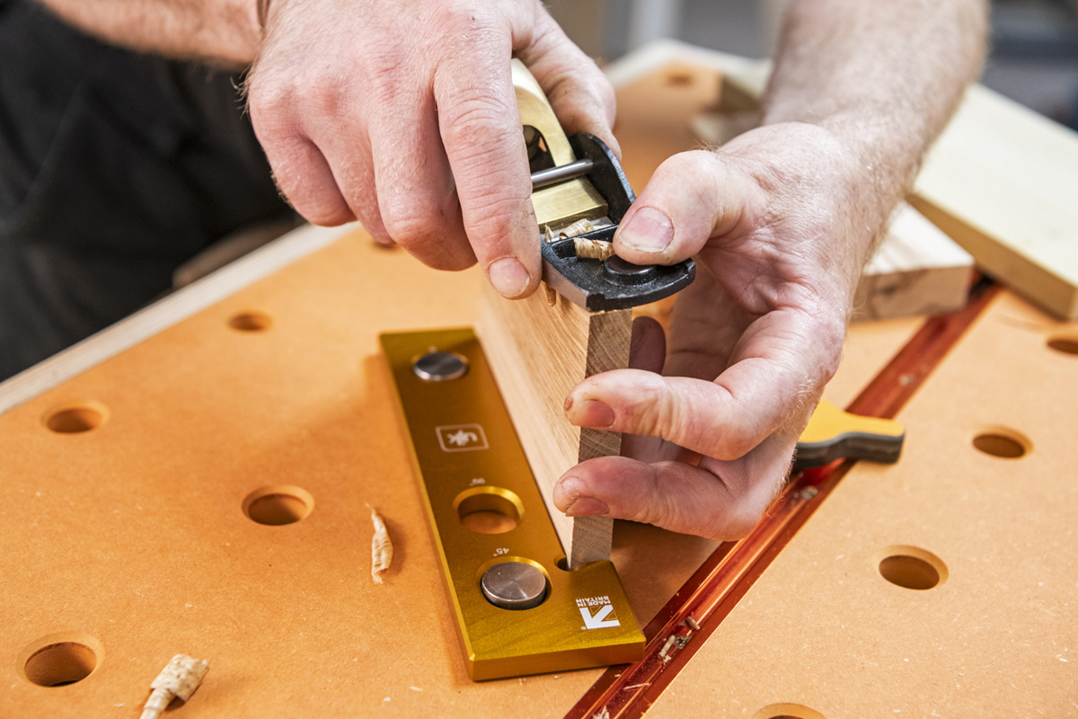 - Compatible with hand planes and power planers, biscuit jointers, and the Festool Domino. It allows for vertical and 45° planing against the body. For secure clamping, pair it with UJK Cam and Wedge Clamping Set and for thicker wood, simply stack multiple stops for a firm hold.