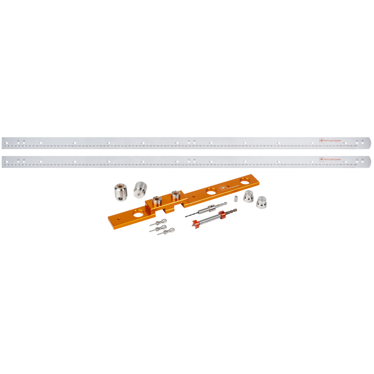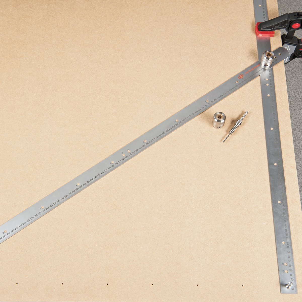 Use with UJK Super Dogs, a guide rail, and a track saw for flawless 45° and 90° cuts. Create tighter grids with 32mm or 46mm spacing for endless cutting, assembling, and clamping options.