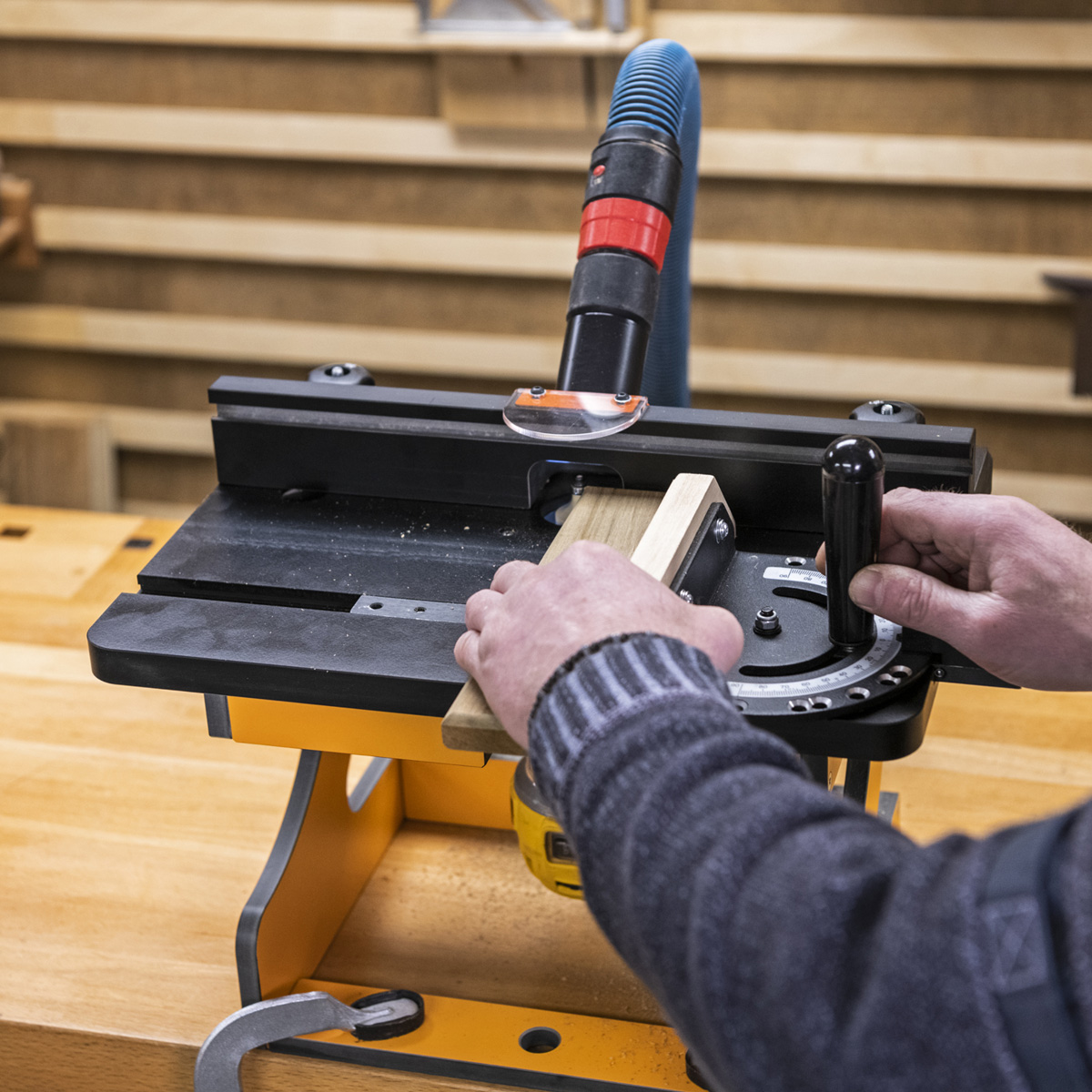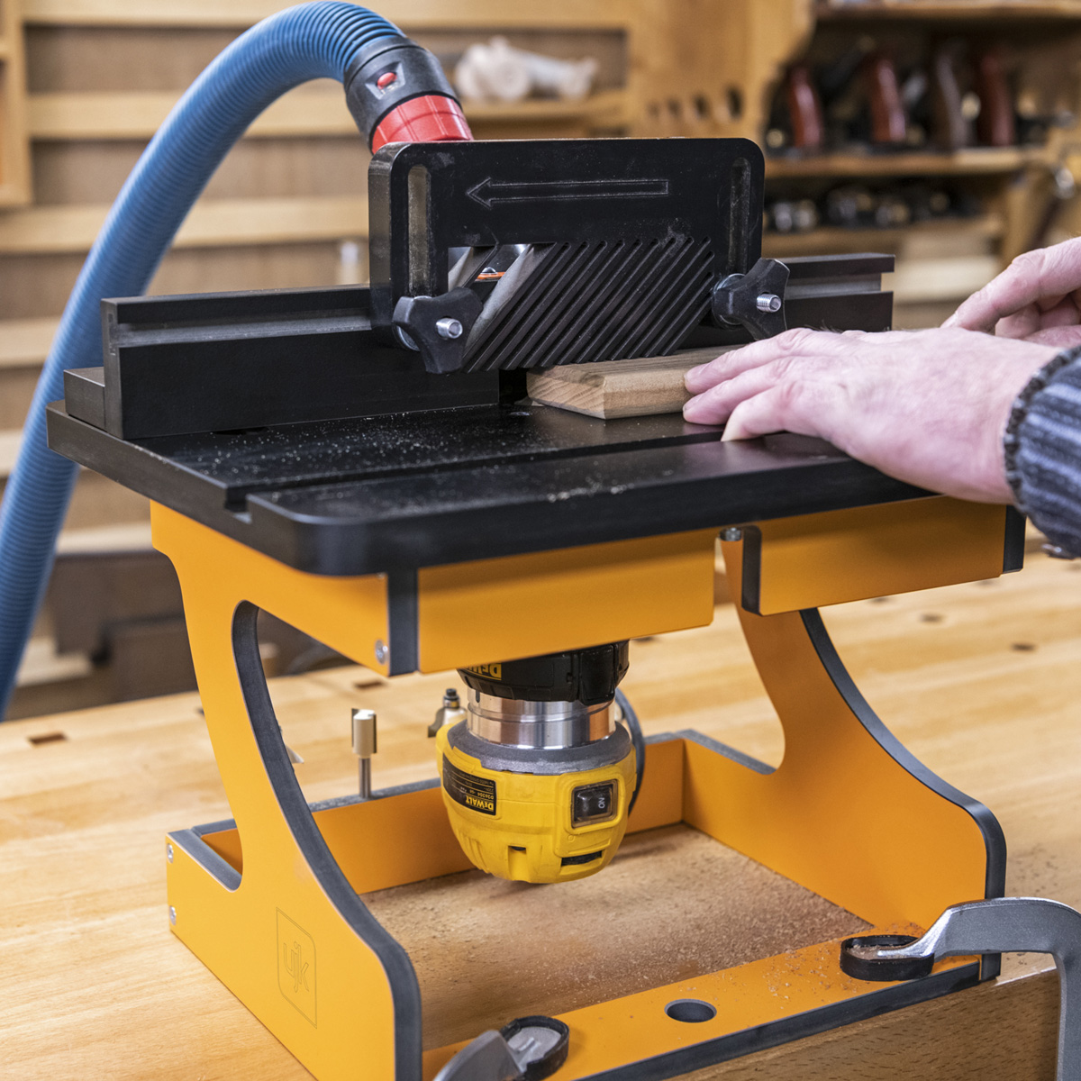 The innovative UJK Portable Trim Router Table is designed specifically for 1/4" palm routers, and for woodworkers who value precision and portability. This table allows the accuracy and versatility of a full-size router table in a portable, benchtop format, allowing you to create intricate trim routing with unparalleled accuracy.