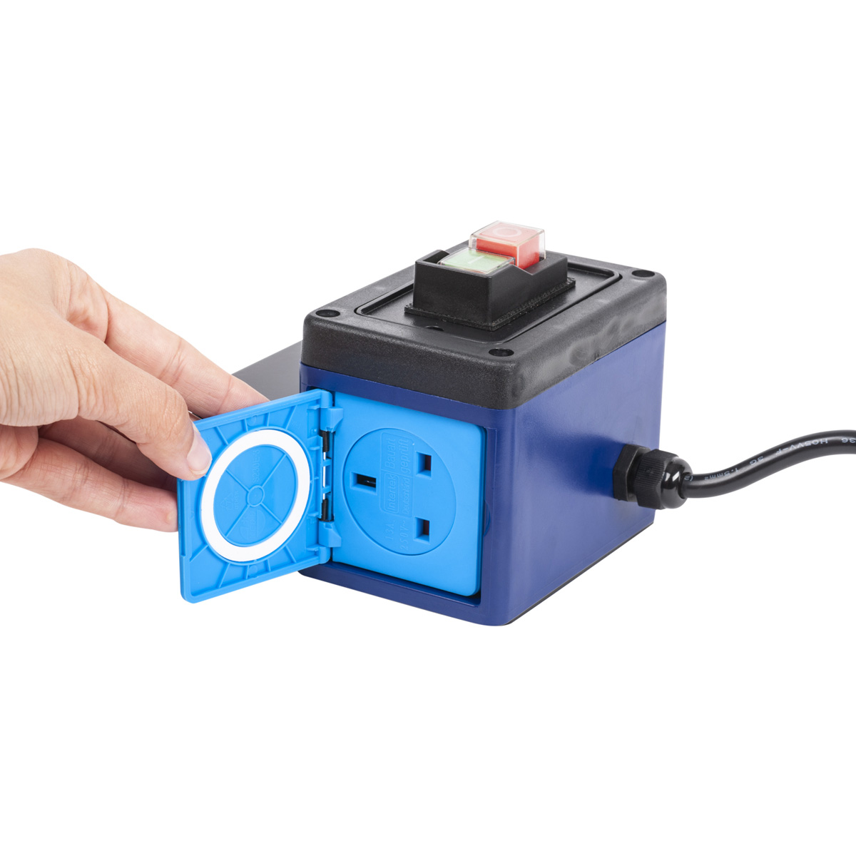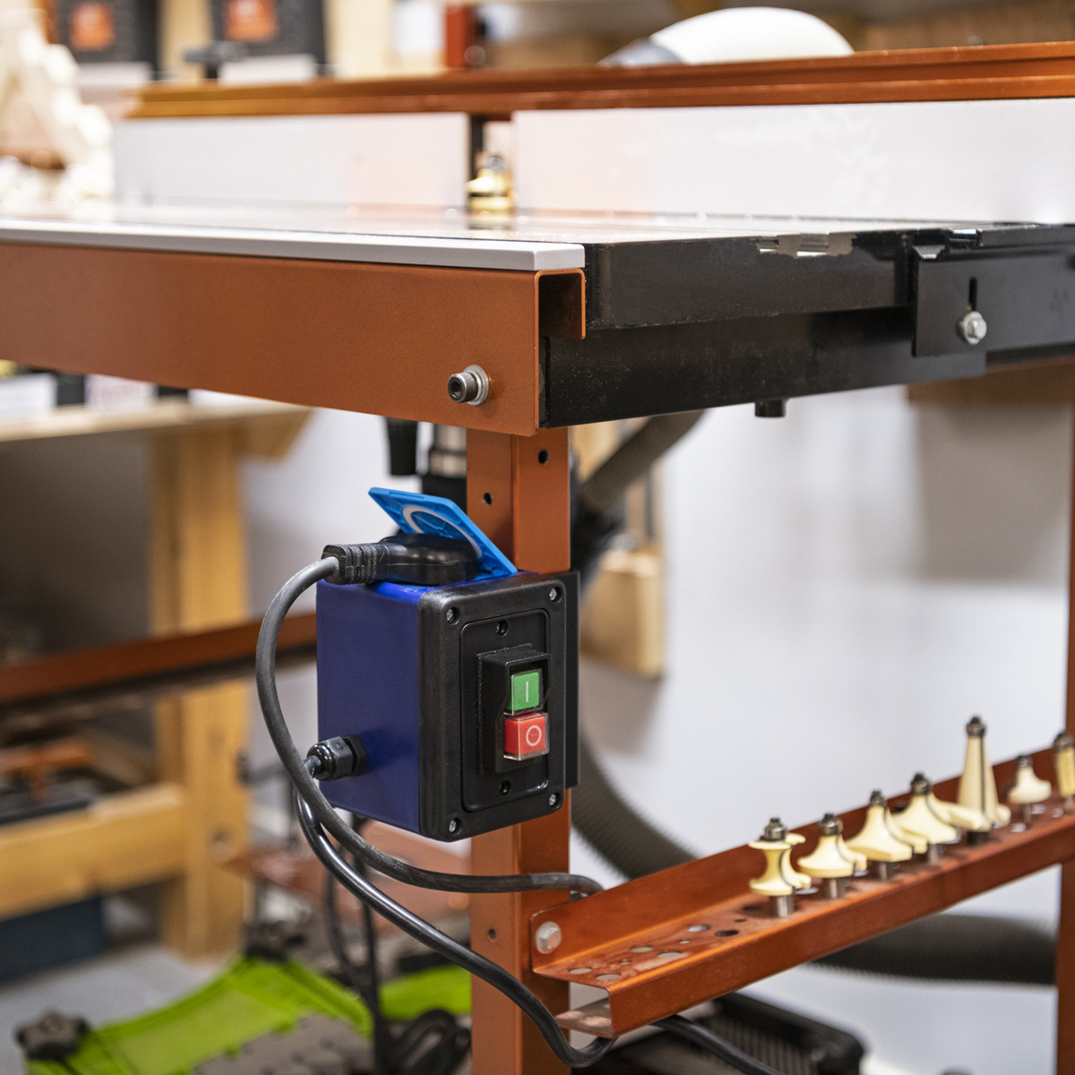 This NVR Switch clamps directly to the leg stand of the UJK Professional Router Tables and provides an independent switching arrangement for your router. Offering the protection of No Voltage Release and with a protected 13A socket, it is perhaps the best way to use your router in a table. You need to able to "latch" your router's switch in the "on" position. Supplied with 2m of cable with a moulded 13A plug and a steel clamping bracket.
