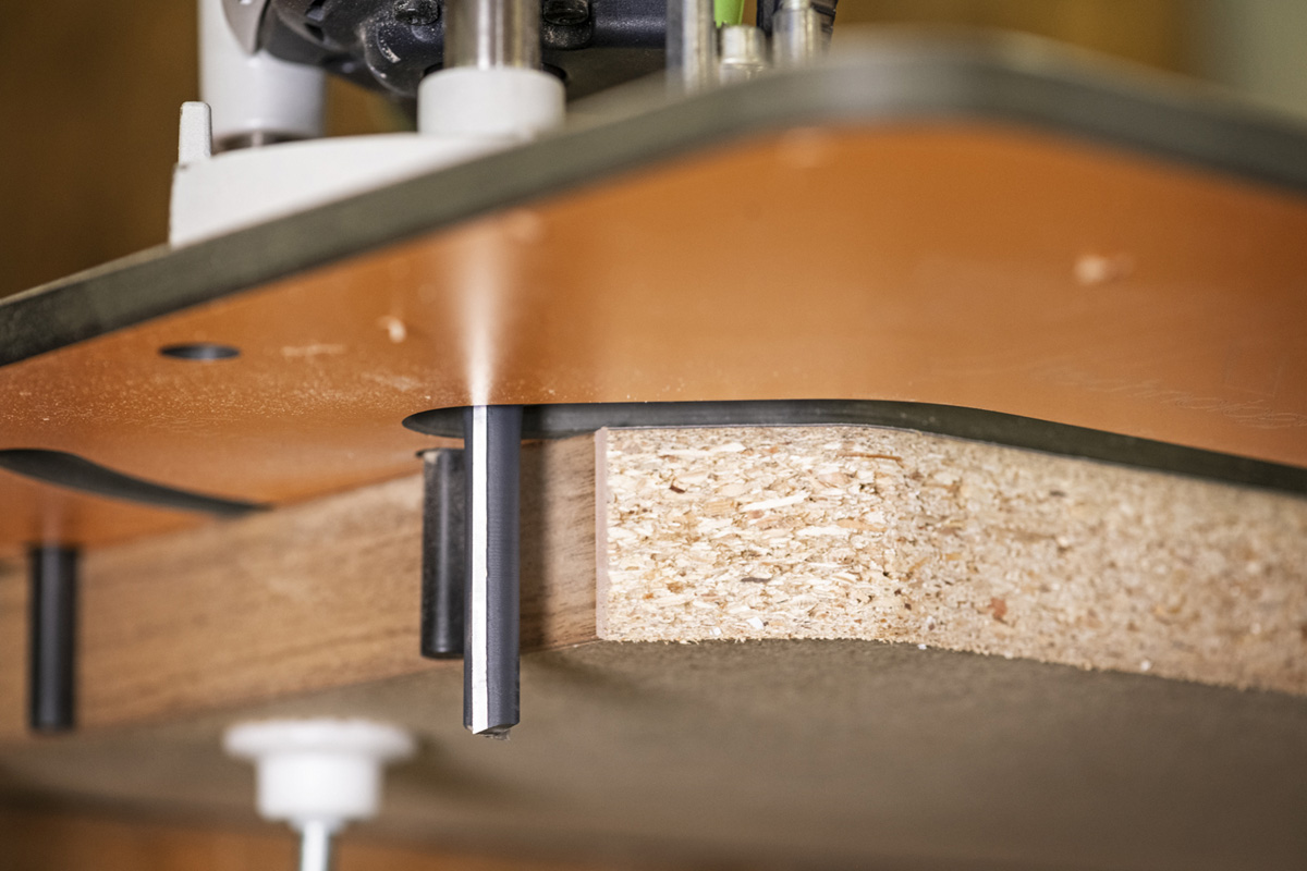 Works seamlessly with natural timbers, hardwood, softwood, and faced material as well as man-made boards, plywood and kitchen worktops
