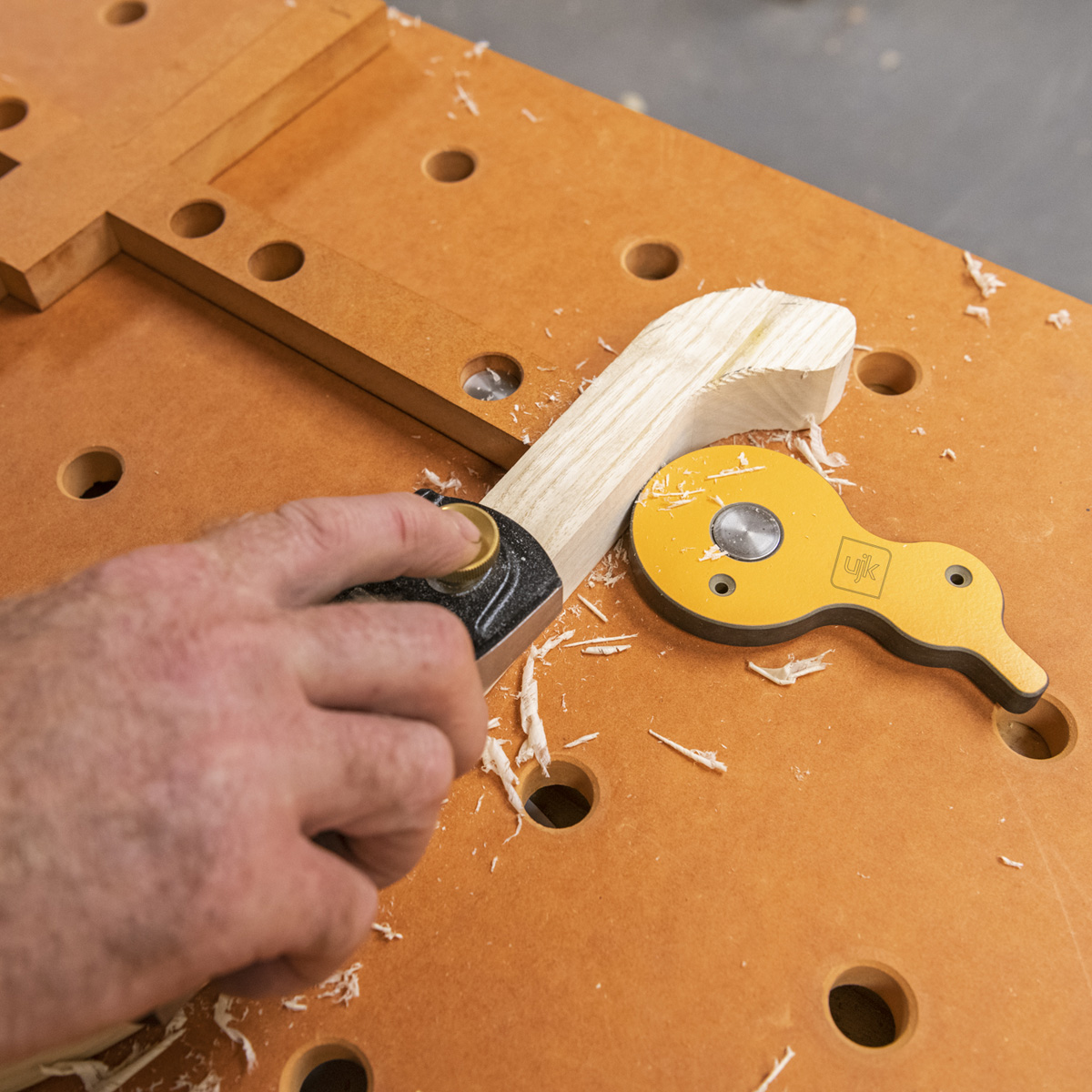 - Designed originally for use on a multifunction table with 20mm dog holes, there is no reason why you cannot use them on any bench with the correct size dog hole. The UJK Guide Pups with their low profile are the ideal companions. The design of these cam clamps solves the problem of holding an item on a flat surface using only side pressure.