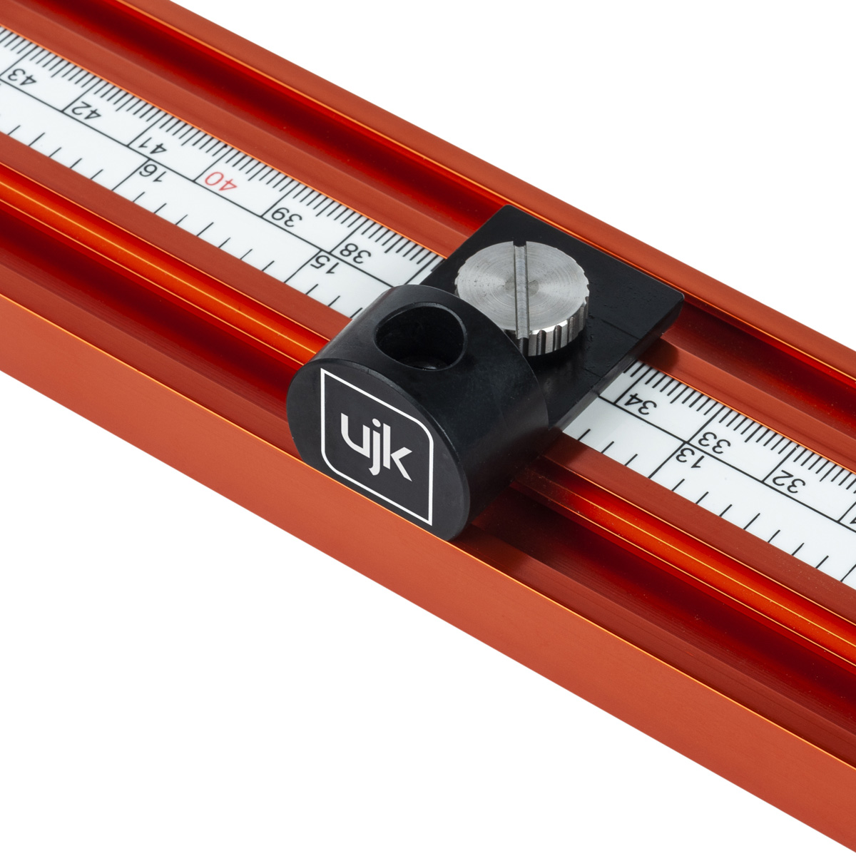 The scale on the top of the Progrip clamp is movable for a good reason. It allows repositioning of the zero mark to suit the project in hand. Of course, once the scale is in place, it needs locking down. These stops fit into the T-slot in the top of the Progrip clamp and lock the scale in position.