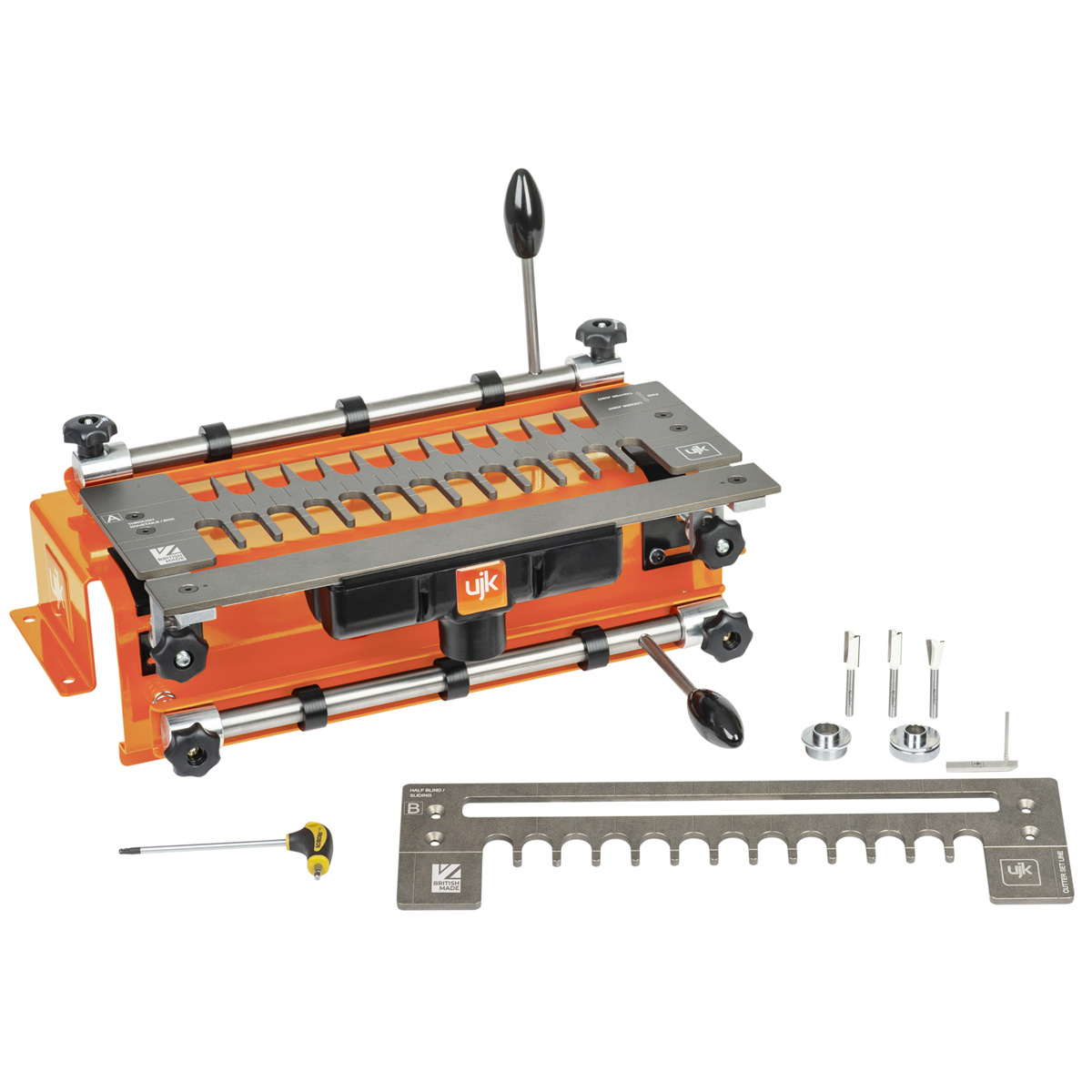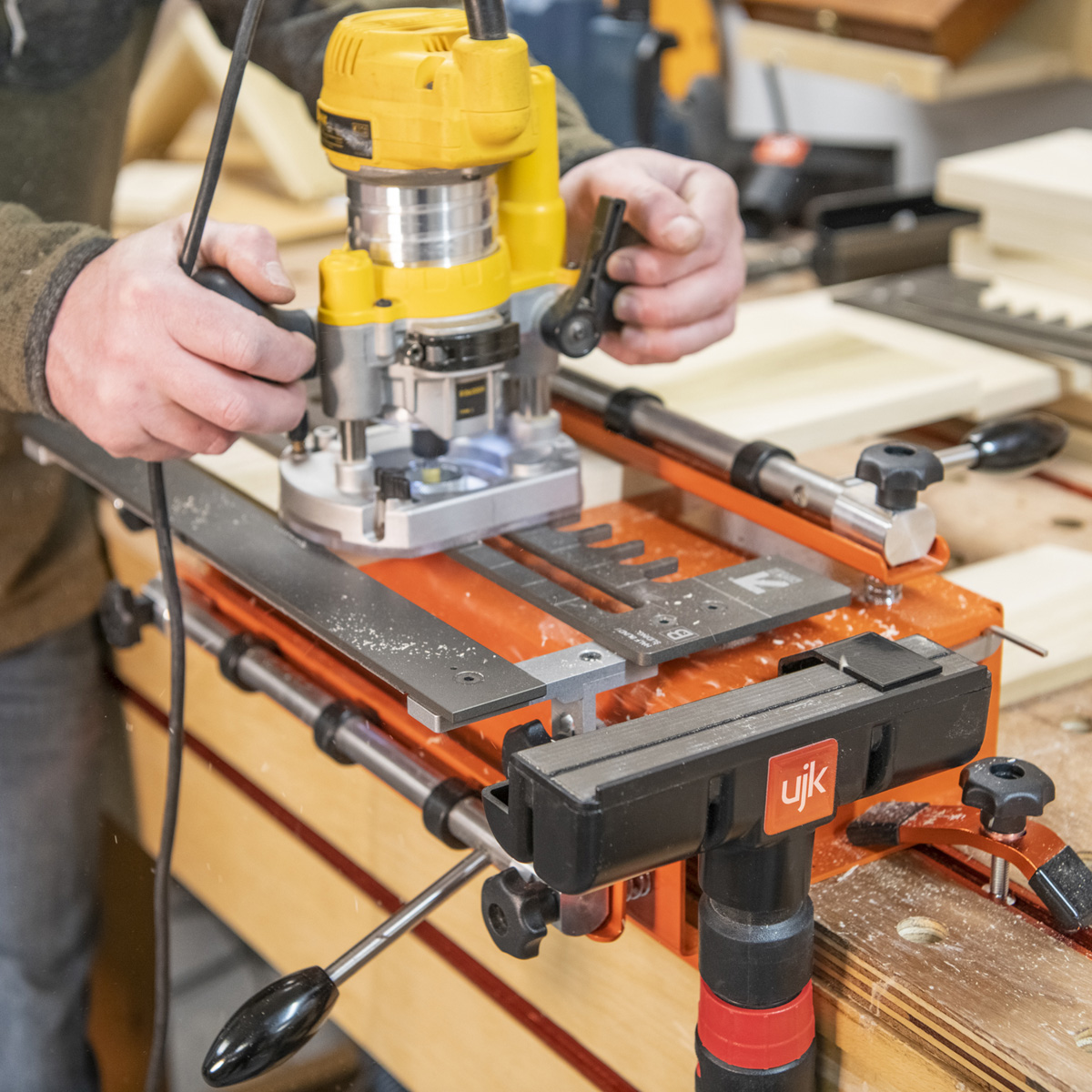 The UJK Universal Dovetail Jig creates strong dovetail joints with ease and precision. This versatile jig simplifies the process of creating dovetail joints, achieving professional quality dovetails with little effort.