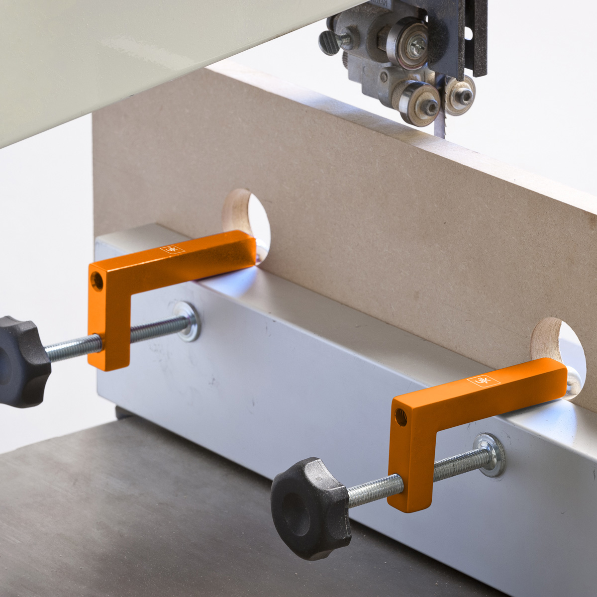 - Secure your sub fence with the UJK Universal Fence Clamps. These clever clamps allow you to attach a wooden sub-fence securely, leaving the face obstruction-free, ready for cutting. Simply drill an 8.5mm hole in the fence, and the clamps will hold the sub-fence in place. The 16mm square section anodised aluminium body and 7mm round steel bar ensures durability. The clamping screw is 80mm long. This gives the clamp a maximum capacity of just over 150mm, with a throat depth of 38mm.