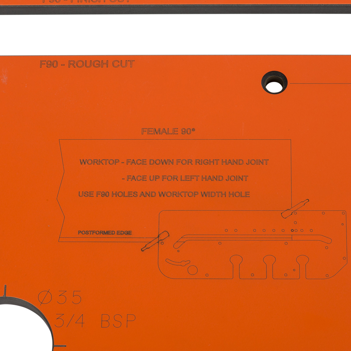 - This one jig can offer so much scope. It is capable of 45° and 90° left or right hand joints in worktops with widths of 250/300/400/450/500/550/600/616/620/650/700mm.